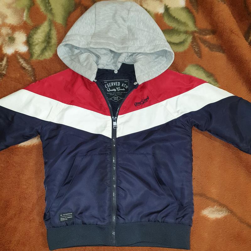 Куртка бомберка чоловіча для хлопчика розмір с, 122см/7 стан нової ходили 1,5 місяці. 2020р випуску з капішоном. капюшон відстібний. може бути продано в комплекті з світерком - батніком.