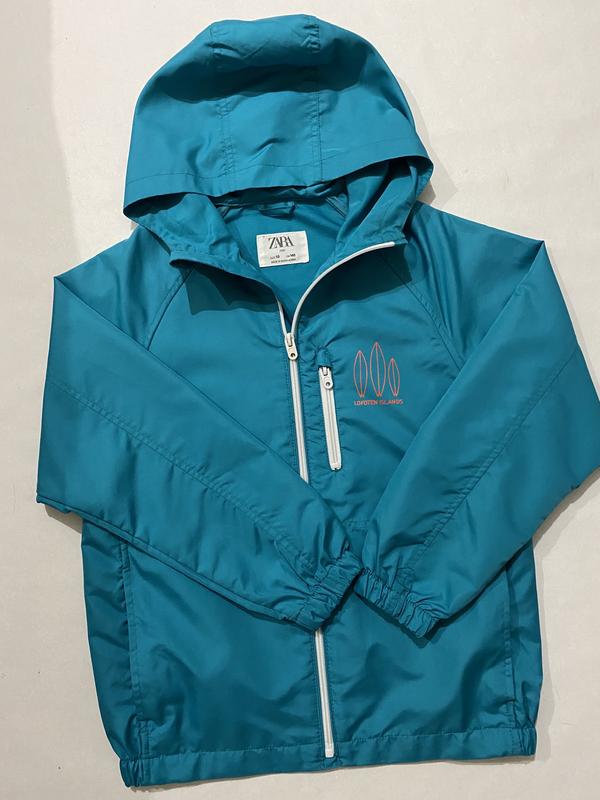 Вітровка на хлопчика 10 років, зріст 140 див. Стан нової речі. Рукав реглан, довжина від капюшона 62 см. Довжина по спинці від капюшона 57 см. Ширина 47 див.