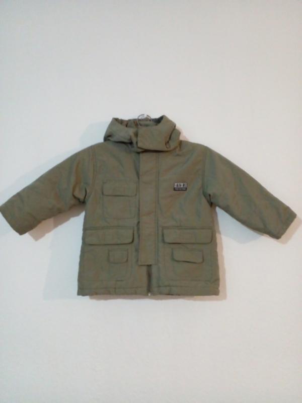 Без слідів носіння. Розмір вказано 98( ріст) плечі-33-34 пог-40-42 поб-40-42 рукав-32( від плеча)-42( від горловини) довжина-46-47 капюшон знімається