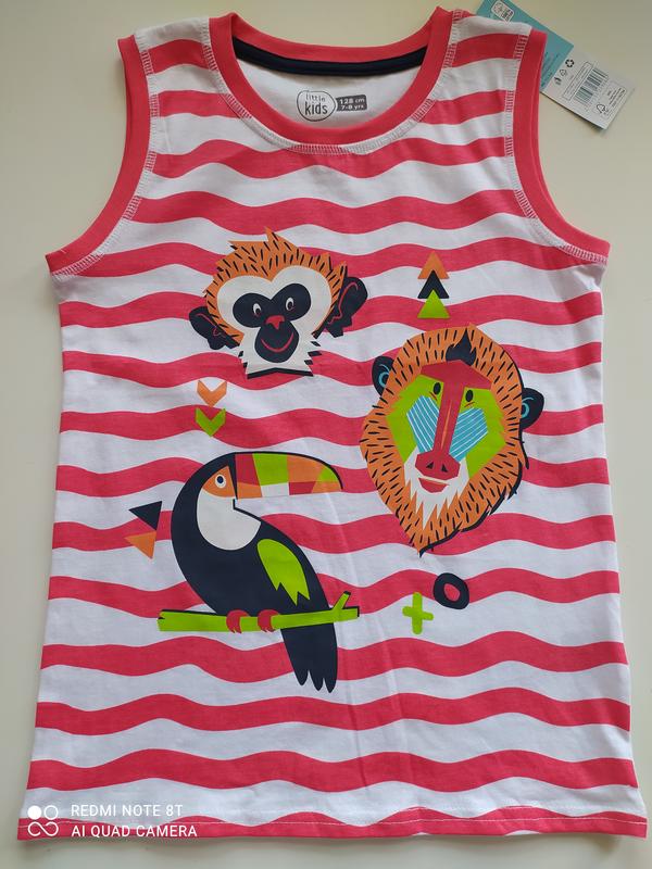 Красивая, яркая, новая майка на мальчика 6-8 лет.Ткань 100 процентов натуральная.Длина 51 см.обхват груди 70см.Пите пожалуйста, Сделаю дополнительные фото.