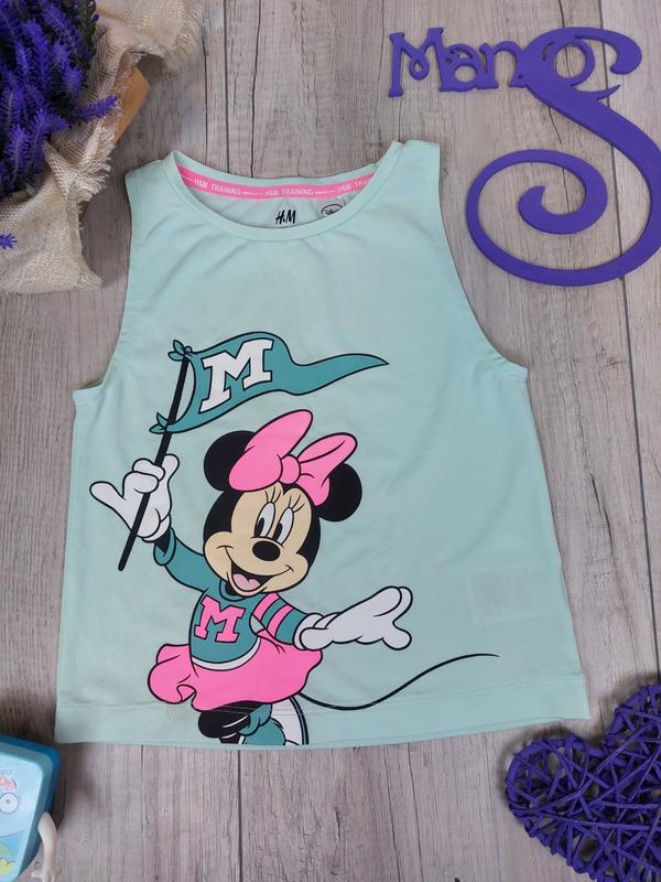 Майка для девочки h&m салатового цвета с рисунком мини маус размер 122/128 (6-8 лет)