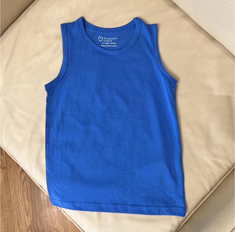 Майка синя 6-7 років ріст 122 на хлопчика від primark cares нова без бірки дов 49, шир 33....