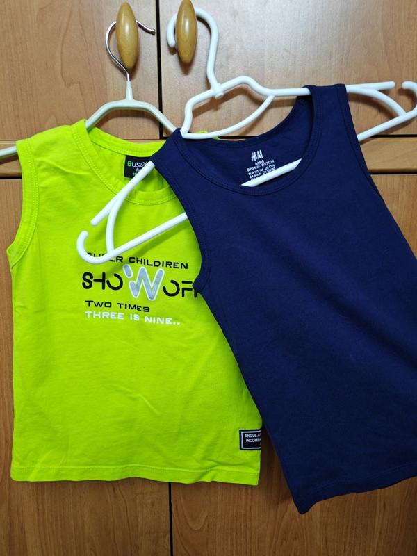 Майка H&M из хлопкового трикотажа. 100% бавовна. НОВА Цвет: синий Размер: 110/116 см, на 5/6 лет Длина 44 см Пиг - 26+ см. Майка салатовая, 100% хлопок, размер: 110 см/5роков Длина 44 см Пиг - 32 см. Цена за 1 шт. - 101 грн, при 2 шт - 180 грн,
