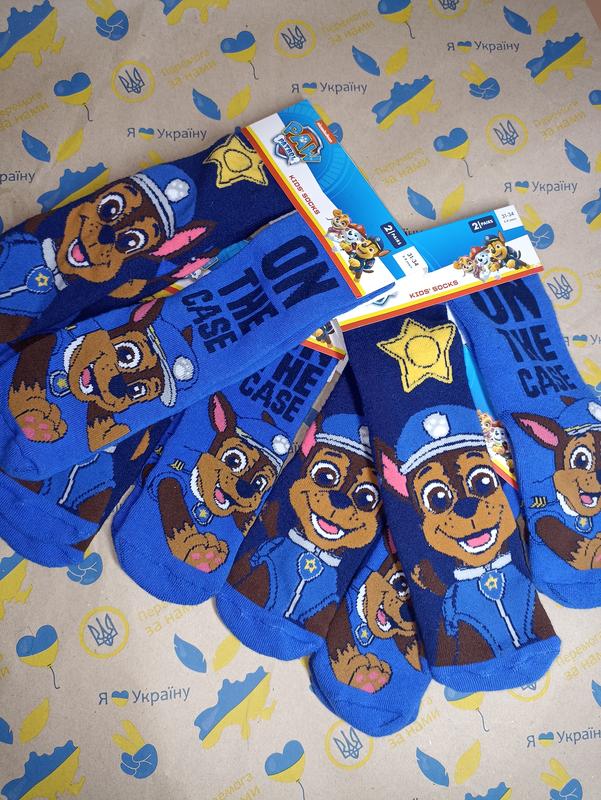 Детские носки, для любителей щенячьего патруля. Размеры:- 27-30(2 уп.) и 31-34(2уп.) с протекторами на стопе. Высокое содержание хлопка.