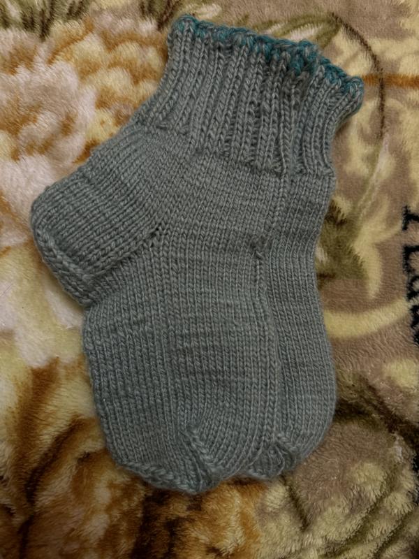 Детские вязаные носки ручной работы на длину стельки где-то 14 см и 15 см. Оттенок мятный. Изготовлено с любовью ;)