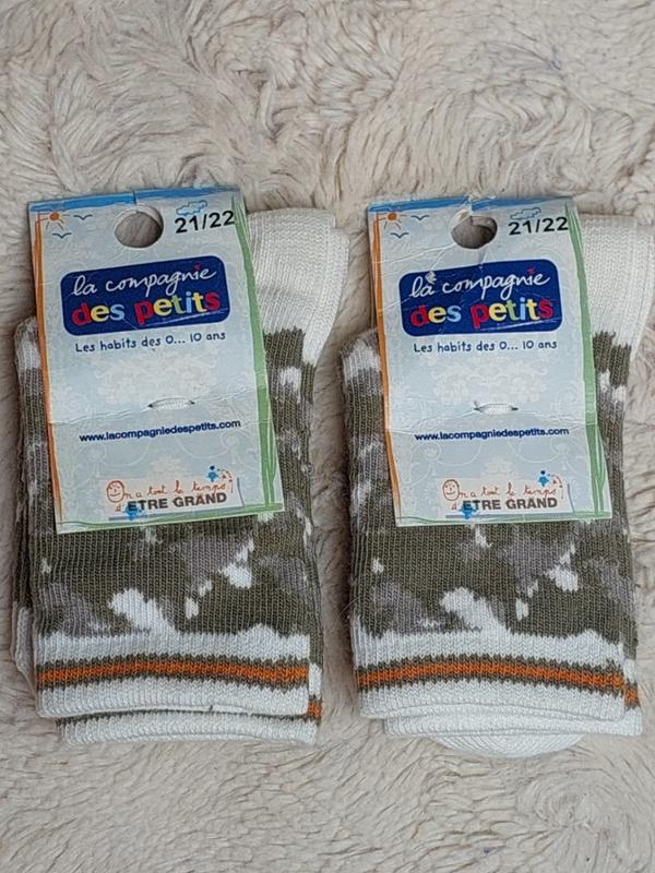 Носки детские. Размеры разные. Состав 80%хлопок 19%полиамид 1%эластан. Резинка двойная. Производитель Франция.