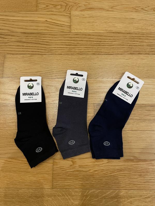 Носки детские MIRABELLO, органический хлопок, новые Набор из 3 пар носков MIRABELLO Kid’s. Размер: 11 Цвета: чёрный, серый, тёмно-синий. Материал: 97% органический хлопок, 3% эластан. Особенности: антибактериальная обработка, гипоаллергенные Состояние: новые, с биркой.