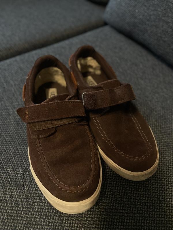 Замшеві коричневі мокасини UGG, розмір USA 3 Дуже класні мокасини, натуральні якісні матеріали, зручні, на середню повноту або на вузьку ніжку, липучки -як нові, підошва- є сліди використання. Підійде як шкільне змінне взуття.