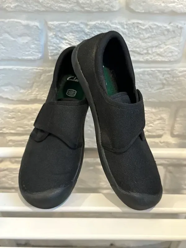 Предлагаю мокасины, кеды Clark’s. Очень удачная модель, покупаю такую ежегодно как сменную обувь для школы. Так же это может быть вариант уличной обуви на весну-осень. Именно такие мокасины Clark’s намного лучше подобных George и пр-здесь ткань намного плотнее, прочнее и как-будто чем-то пропитана, поэтому и очень легко убирать пятна и чистит-стирать. Мокасины новые, сын перерос этот размер . Размер 33,5. Но они немного больше меня. Длина по стельке от края до края 21,5 см. Цена 185 грн