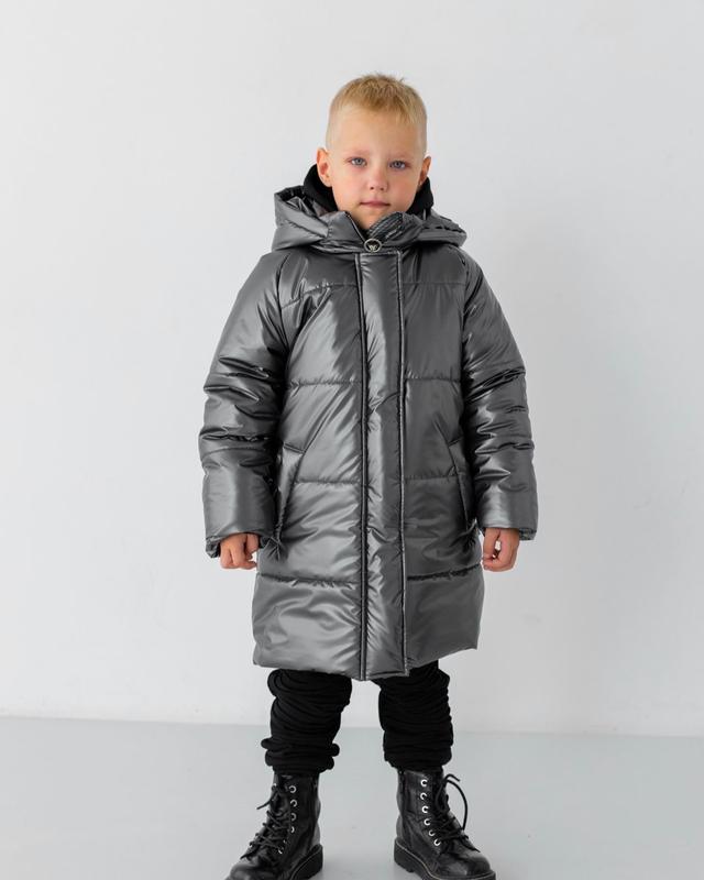 Зимове пальто графітове для хлопчиків до -30 морозу тепле на флісі всередині
