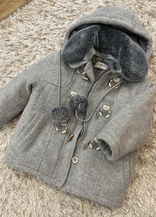 Стильненьке гламурненьке пальто дуже утеплене може бути зимове має теплу підкладку вовна капішон відщібається Розмір на 2/3 роки