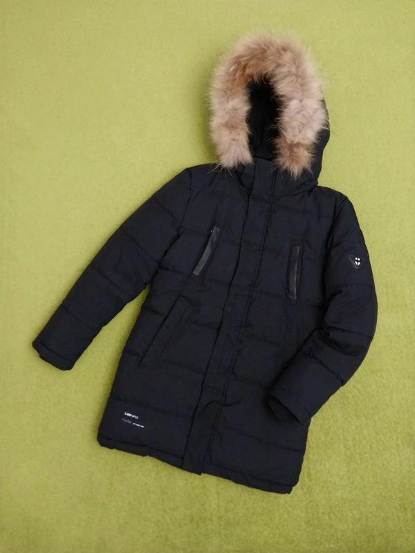 Очень теплое зимнее пальто на мальчика подростка 146-152 см, смотрите замеры. Самое теплое пальто, что было у нашего сына. Без преувеличений. Спинка удлиненная, попа полностью закрыта. Никаких дефектов. Фурнитура целая, рабочая. Цвет черный. Все густо наполнено холлофайбером (при стирке не сбивается). Подкладка жилеткой и воротник - флис, рукава и капюшон - полиэстер. Капюшон и натуральный мех сьемные. Рукава с ветро-снегозащитными манжетами. По низу и в капюшоне утяжка. Спереди четыре кармана на молнии, внутри - один большой на липучке. Застежка - молния и кнопки. Замеры, см: длина спереди по центру 75, от плеча - 74, по спинке - 78, ширина под рукавами 50, длина рукава от плеча без манжета 58.5, с манжетом - 59.5-60, плечо 12, ширина плеч 43.