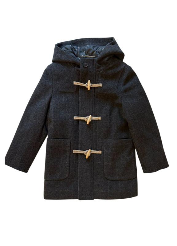 Отличное демисезонное пальто для мальчика. Верх - шерсть 80%, полиамид 20%, подкладка - 100% полиэстер. Вшитый капюшон, высокий воротник, надежно закрывающий шею, внутренняя застежка - молния, снаружи прикрытая полочкой с декорированными пуговицами, накладные карманы.Стильное, теплое высококачественное пальто для маленького джентельмена. Размер: 7/8 лет, 128 см, замеры изделия: плечи - 33 см, рукав от плеча - 45 см, ПОГ - 37см, длина по спинке - 60 см.
