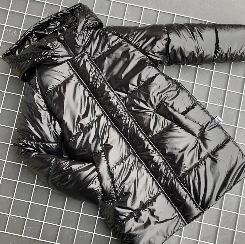 Зимовий пуховик з лаку монклер на флісі з капюшоном