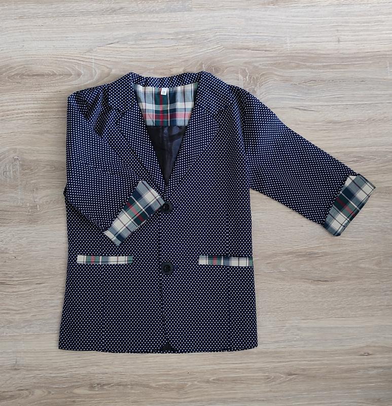 пиджак для мальчика по бирке 130 см, но будет раньше легкий рукав 7/8 одет был один раз на выпускной в садочку стан нового замеры: длина по спинке 46 см ширина 37 см рукав от плеча 29 см плече 9 см
