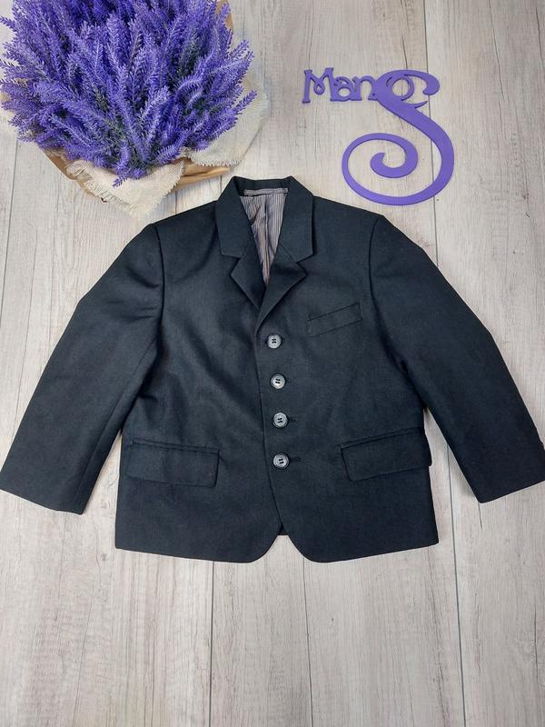 Пиджак BHS для мальчика чёрный Состояние: б/у, в идеальном состоянии Производитель: BHS Размер: 104 (4 года) Цвет: чёрный Состав: 50% вискоза, 50% ацетат