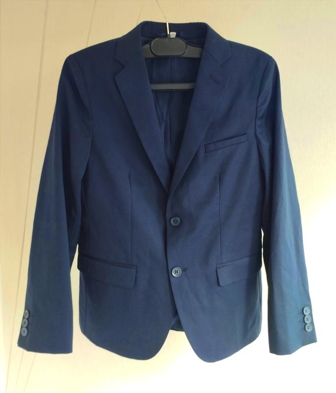 На рост 146 см. Замеры: полуобхват груди 40 см, полуобхват талии 37 см, длина по спине 56 см, расстояние между плечевыми швами в верхней точке 34 см, длина рукава от плечевого шва по внешней части 53 см. Материал: 60% шерсть, 40% полиэстер. Цвет: темно-синий. Состояние отлично.