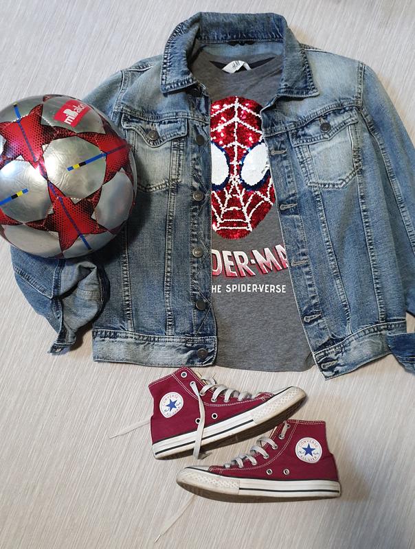 Джинсовый пиджак, р.11-12 лет (146-160), унисекс Красивая варочная денима. В продаже также футболка с пайетками из заглавного фото Плечи-37 см, рукав-60 см, ПОГ-43 см, длина -52 см