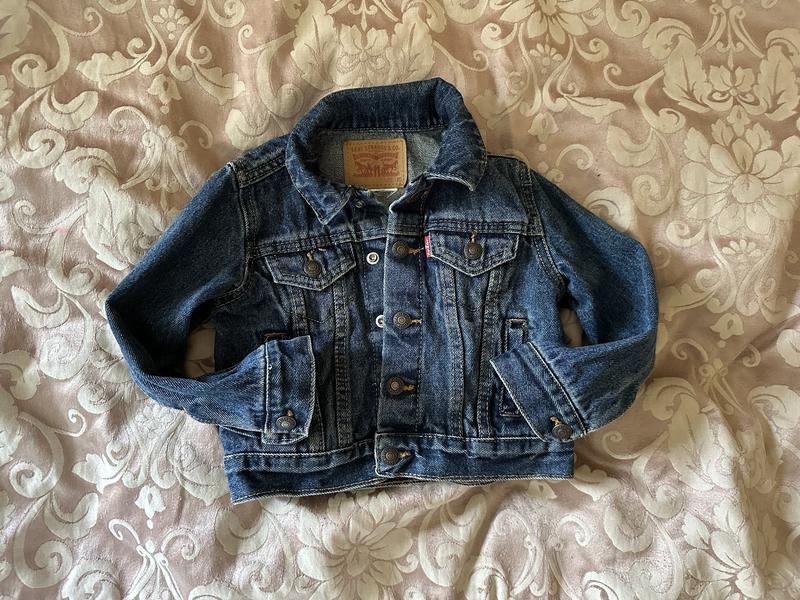 Джинсова куртка Levi’s 2 роки В відмінному стані На кнопках Довжина 33см, рукав 34см, груди 30см Ціна 290 грн