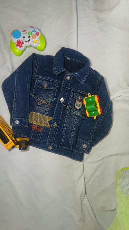 Плотная джинсовка для мальчика размер 98/104 длина 40 см полуобхват груди 35 см длина рукава 35 см