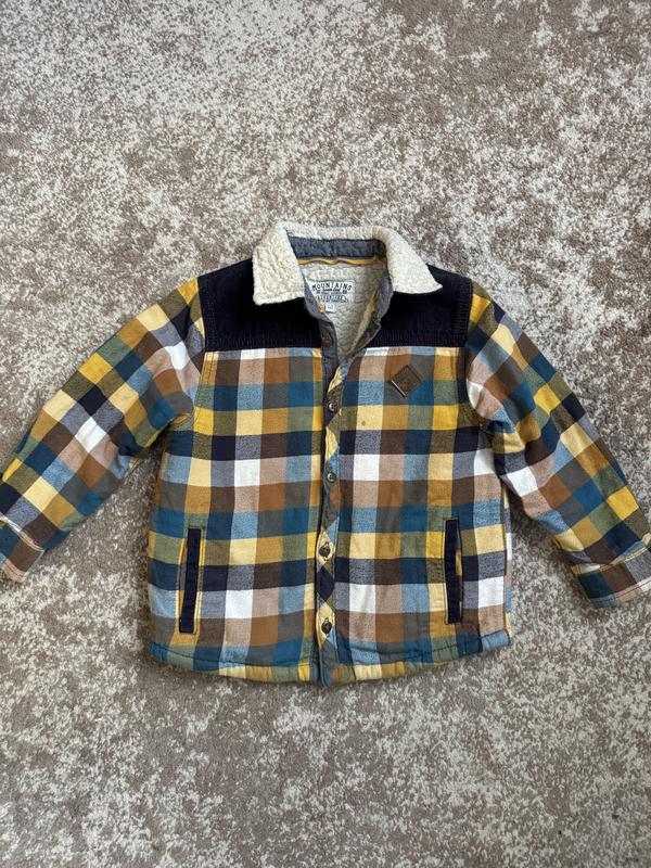Чудова дитяча рубашка в клітинку для хлопчика утеплена Mountains. Розмір 104, 3-4 роки. Утеплена спереду і на спинці . Є маленька крапочка , на фото видно