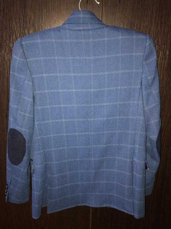 Стильный и удобный пиджак синего цвета на мальчика. Подойдёт в школу. На 8-9 лет