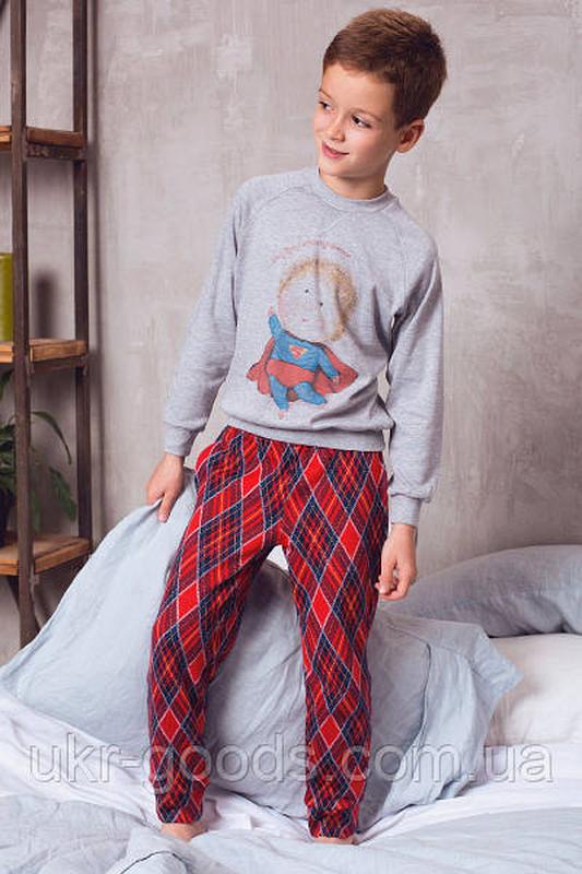 Удивительный джемпер для мальчика из однотонного хлопкового полотна, прямого силуэта, с круглой горловиной, длинными рукавами с притачными манжетами. Спереду - принт. Состав: 100% хлопок Комфортные брюки для мальчика из плотного принтованного трикотажного полотна, прямые и длинные, зауженные к низу, на притачной манжете. На передней части брюк - боковые карманы. Состав: 65% хлопок, 35% полиэстер размер 30(114-118)