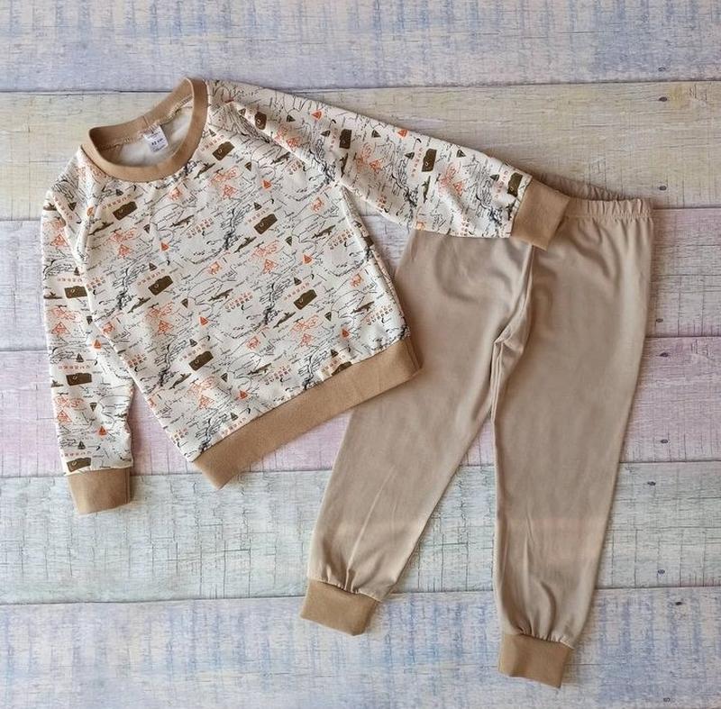 Піжама для хлопчика ,з трикотажної тканини гарної якості 95%бавовна 5% еластан ,не втрачає колір після прання,гарно носиться Трикотаж мягкий,приємний до тіла Заміри піжамки Довжина кофти/ширина/довжина рукава/довжина штанів/крок 92-38/32/32/52/33 98-40/33/34/56/36 104-42/3436/60/41