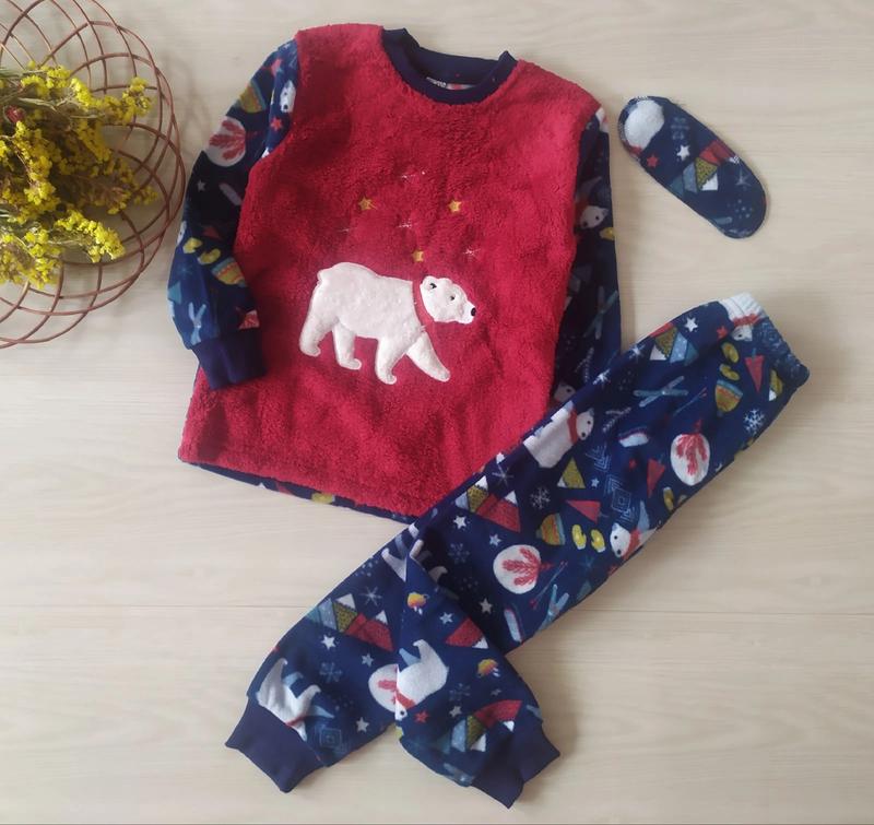 Пижамка флис+махра в комплект входе маска для сну качественная и теплая производитель Турция р5(110см)-1шт ОРИЕНТИТЕСЯ НА ЗАМЕРЫ замеры : длина кофты, рукав, пог, брюки длина, шаг, см р5: 44см/35см/34см// 60см/41см