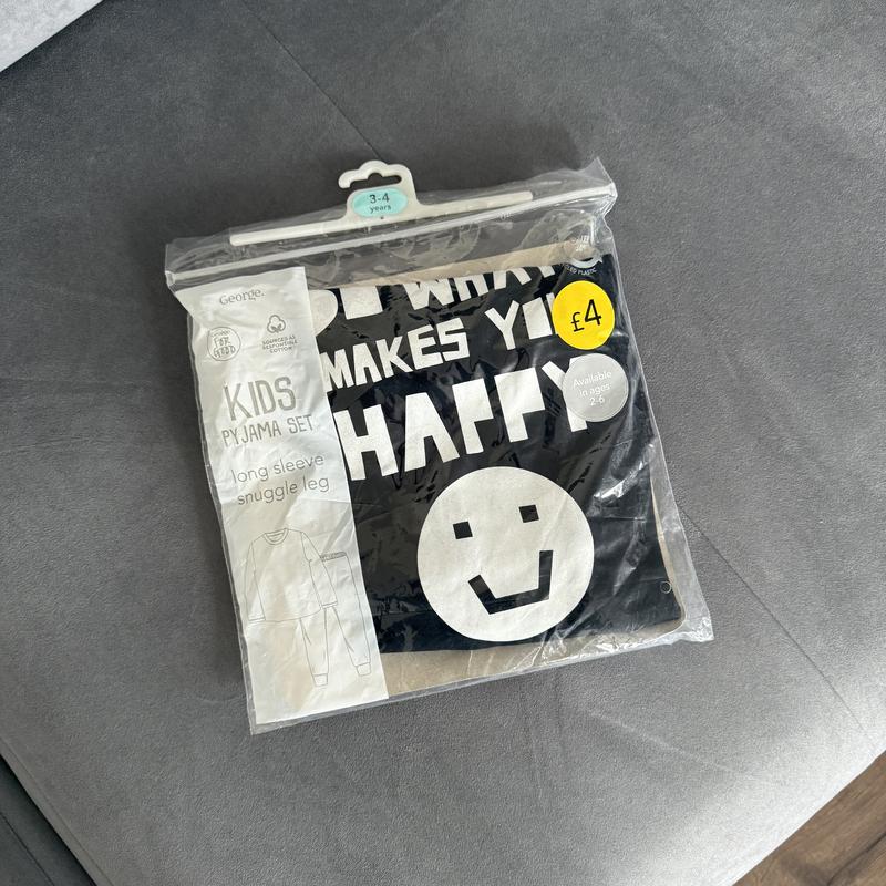 Нова піжама фірми George. На вік 3-4 роки. Верх довжина 43 см, плечі 27 см, рукав 37,5 см. Пояс 24 см, довжина 59 см, шаг 40 см.