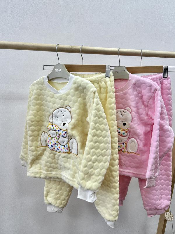 Теплые плюшевые махровые пижамки в наличии Кофточка рукав и брюки низ на манжете Размер 92-98(есть более крупные размеры смотрите объявления другие) В наличии цвет:молочный и розовый Рукав от шеи 44см, от плеча 35см Длина брюк от пояса до пола 59см Шаг 40см