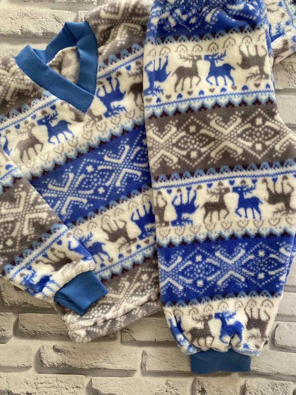 Теплые плюшевые махровые пижамки в наличии Кофточка рукав и брюки низ на манжете Размер 110-116(есть другие размеры смотрите объявления на странице) Рукав от шеи 52см, от плеча 43см Длина брюк от пояса до пола 67см Шаг 49см