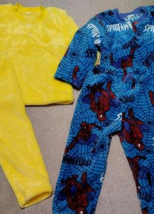 Пижамки новые. На возраст 2-3 года, возможно 4 зависит от роста малыша. Нам подарили мы не успели поносить. Теплые, мягкие. Не раздражают кожу малыша. Размер 56. Замеры: Желтая Брюки резинка не растягивали вид 22 см.В растянутом 35 см. Длина 51 см. Кофта рукав 29,5 см. Плечи 28 см. Длина 37,5 см. Замеры синий человек паук Брюки резинка в не растянутом виде 22 см. В растянутом 31,5 см. Длина 51 см Кофта рукав 28 см. Плечи 29 см. Длина 37,5 см. Цена за одну. Киев возможен самовывиз.