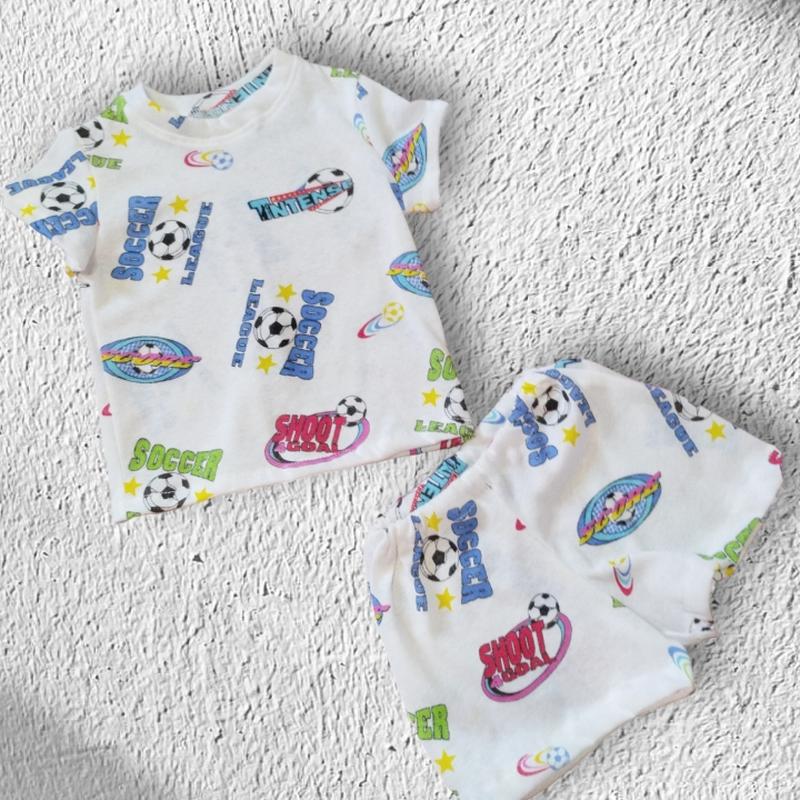 Тонкая, легкая пижамка для лета ☀️ 👉28р. футболка -ширина 30, длина 34 шорты- ширина 31, длина 23 👉30р. футболка -ширина 32, длина 38 шорты -ширина 33, длина 24