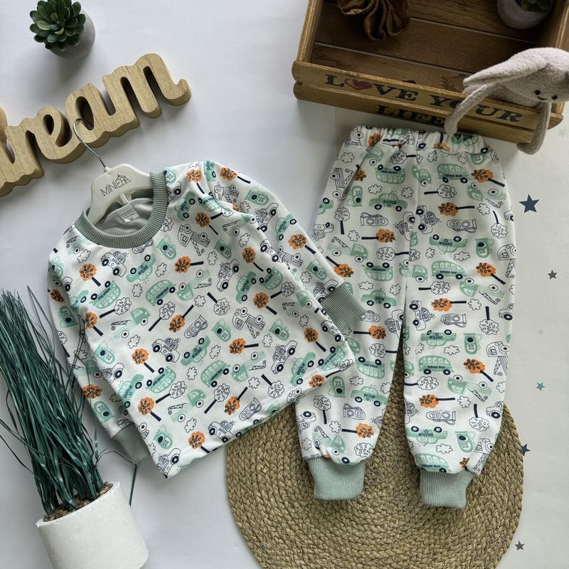 Пижама отличного качества! Ткань- футер ( хлопок 100% с начесом, мягкая и приятная к телу) с трикотажными манжетами! Идеально выдерживает многократные стирки! Не кашлатиться! Размеры: 92 – рукав 27, длина 34, брюки длина 49, шаг 28 98 – рукав 32, длина 35, брюки длина 52, шаг 32 104 – рукав 35, длина 39, брюки длина 60, шаг 39