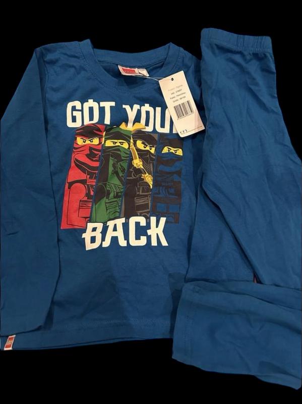 Піжама lego ninjago Розмір 98/104 см На 2-4 роки. Виміри: Реглан Довжина 43 см ПОГ 31.5 см Довжина рукава від плеча 37,5 см Штани: Довжина 63 см ПОТ 24 (гумка, тягнеться) ПІБ 28 см
