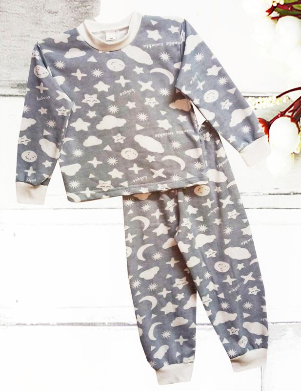 Детская начестная пижама. Полотно модели-футер с начесом. Теплая, мягкая, приятная к телу, не вызывает раздражения. 110р кофточка - длина 41см, длина рукава38 см. ПОГ32 см. Штанишки длина 65см, шаг 43см Доставка: Новая почта, Meest, Укрпочтта, Доставка за Ваш счет.