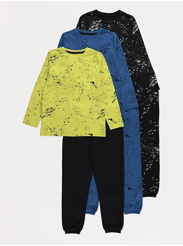 Стильна трикотажна піжама для дитини. Складається з реглану та штанят. Реглан з довгими рукавчиками. Штани з манжетами знизу, пояс - еластична ґумка. Принт на реглані - бризки фарби, штани однотонні чорні. Склад: 100% бавовна. Розмір, роки Довжина реглану по спинці, см Ширина реглану під руками, см Довжина рукавчика від плеча, см Довжина штанят, см Кроковий шов, см Пояс, см 6-7 46 34 43 69 46 26 7-8 48 35 45 73 49 28 8-9 49 38 48 78 54 29 9-10 51,5 39 50 83 57 30 10-11 53 41 51 87 58 31,5 11-12 55 43 54 89 61 32 12-13 57 44,5 56 90 62 32,5 13-14 60 46 58 91 63 33