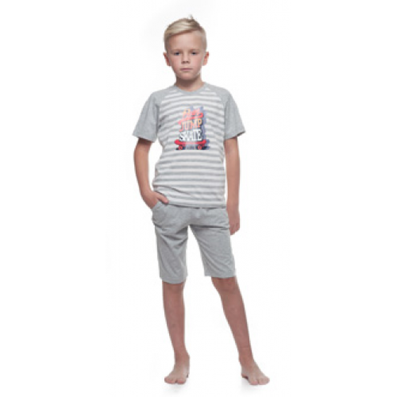 Якісна піжамка для хлопчика, футболка та шорти сірого кольору.