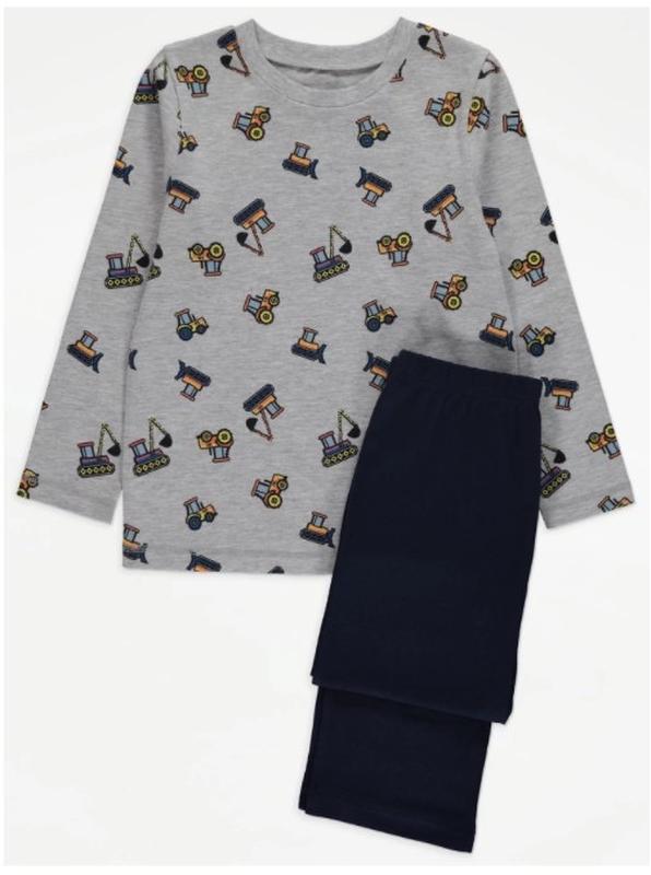 Стильная детская пижама для мальчика фирмы George Англия. Пижама пошита из ткани с рисунком строительной техники. Пижама состоит из реглана с длинным рукавом и штанов. Состав - хлопок. Пижама на возраст 2-3 года Идёт в упаковке