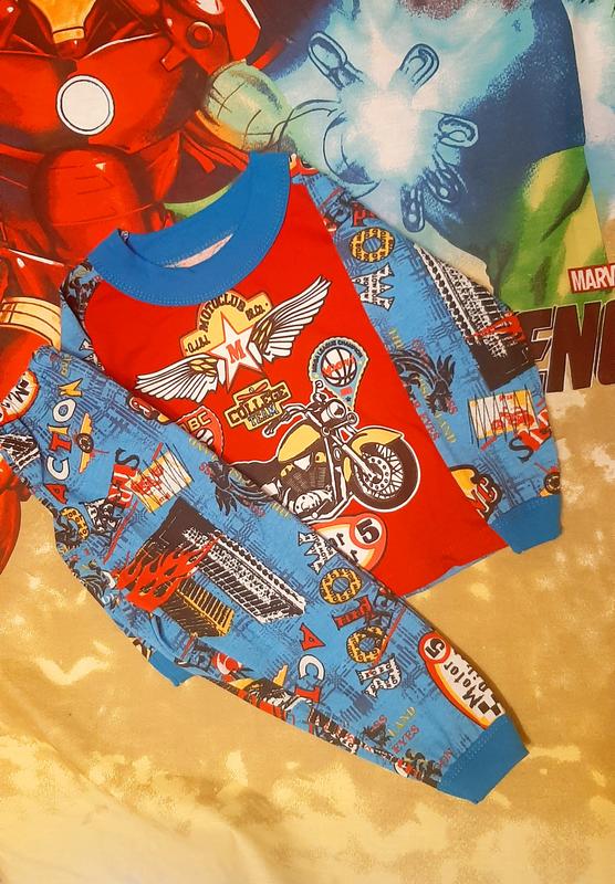 Отличная пижама для маленьких модников. Натуральная легкая ткань ( кулир). Яскравий принт. Размер указан 26. Пог 26, длина брюк 43см( 2см манжет). Отправка по подписке укр или новая почта
