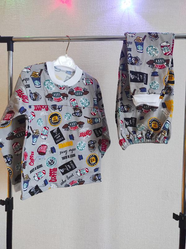 Чудова піжамка на хлопчика , тонкий утеплювач в середині . Гарно тягнеться , приємна еластична тканина. Розміри 116,122,128 Заміри 116р Довжина кофти 47см Ширина 36см Рукав 42см Штани довжина 70см 122р Довжина кофти Ширина 49см 39див Рукав 45см Штани довжина 75см 128р Довжина кофти 52см Ширина 41сс Рукав 49см Штани довжина 78см