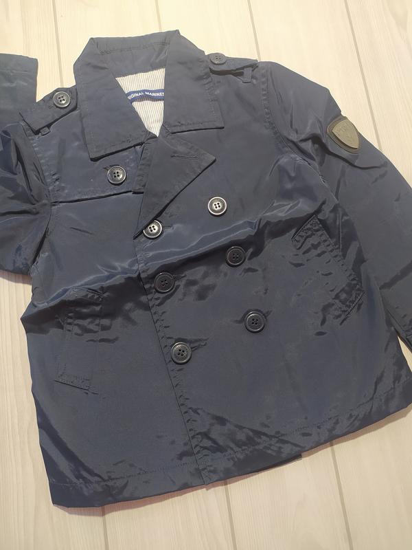 Детский плащ Marines 4 года. Плащ выполнен из гладкой ткани. Прямой фасон, двубортный ряд пуговиц, модель без утепления, переда карманы. В очень хорошем состоянии, без дефектов. Цвет темно-синий. Ориентируйтесь на замеры: Длина 40 см, ширина 34 см, рукав извне 39 см.