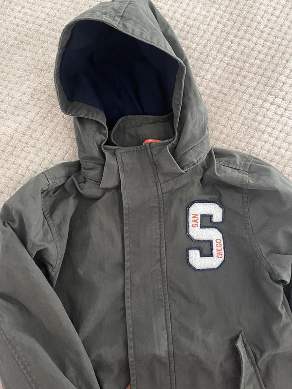 Состояние отличное, идеальное на нашу теплую осень, прохладную весну. Плотный коттон, трикотажная подкладка, в рукавах атласная, хорошо надевать. Капюшон отстегивается