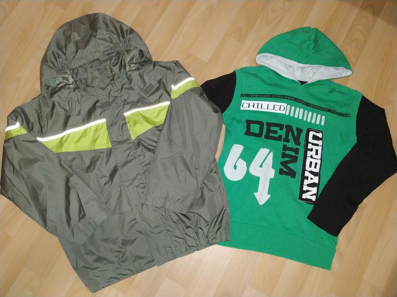 Практичний і стильний комплект, ціна вказана за набір, розмір 140/146. Виміри напишу особисто, з радістю відповім на всі запитання.