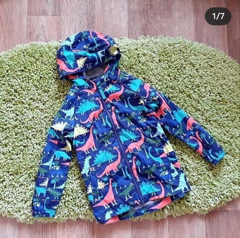 Шикарная яркая ветровка в динозаврах на коттоновой подкладке для мальчика.Фирма TU, размер указан 3-4 года,на рост 104 см. Есть точно такая же 2-3 года и 1,5-2 года. Снаружи водоотталкивающая ткань.Подкладка коттон. Застёгивается высоко под горлышко. Сзади немного удлинена. Состояние новой! Выворачивается и компактно складывается сумочкой. Всегда можно взятьс собой, не занимает место. Замеры 3-4: Длина от плеча до низа 46/48 см Ширина под ручками 38 см Рукав от капюшона 44 см