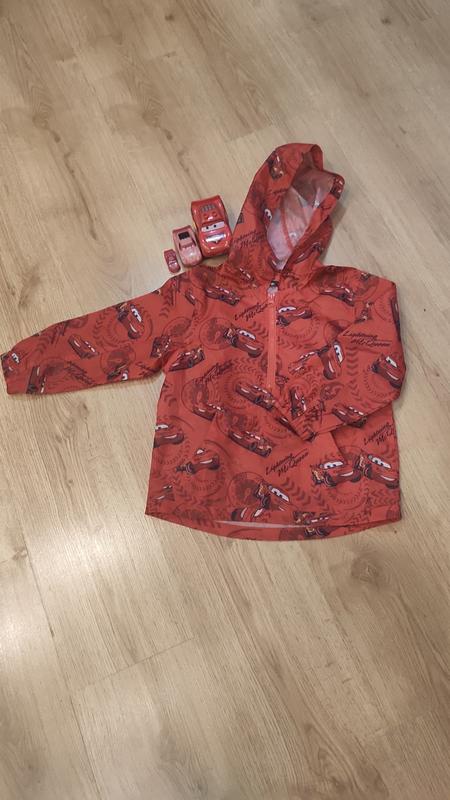Дождевик для юных любителей Маквина. Лёгкий,удобный, яркий. На спине есть карманчик на липучке, на рукавах резиночки, спереди сквозной карман. Длина 48 см, рукав от плеча 37,5 см