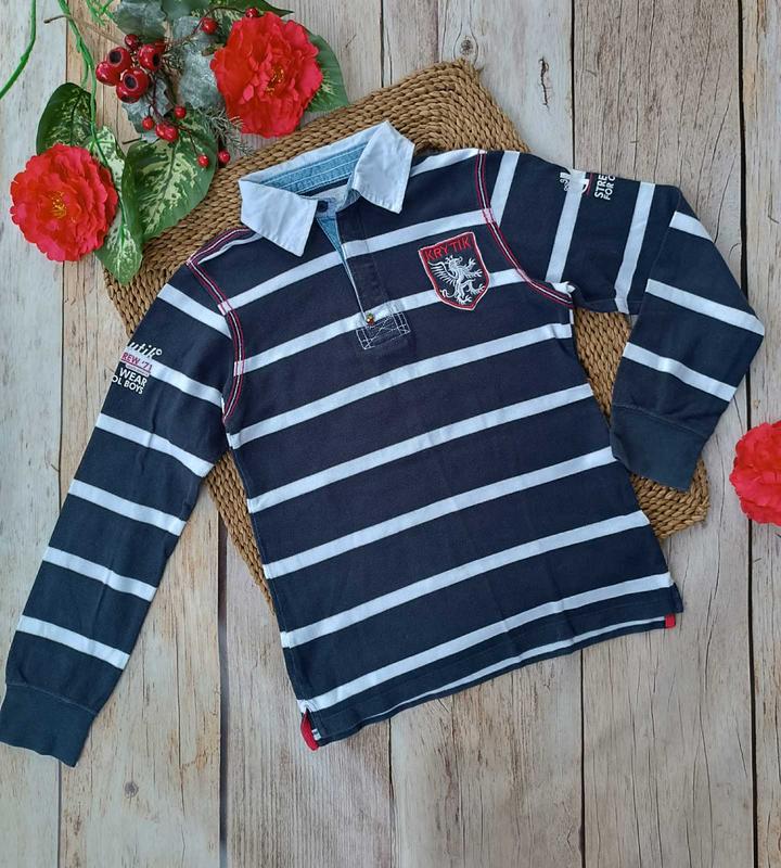 79💥очень классный качественный реглан поло, состояние великолепное, следы носки заметны чуть только на манжетах, в целом цвет в норме 📏8/9 лет, длина 54, пог 39, рукав 53