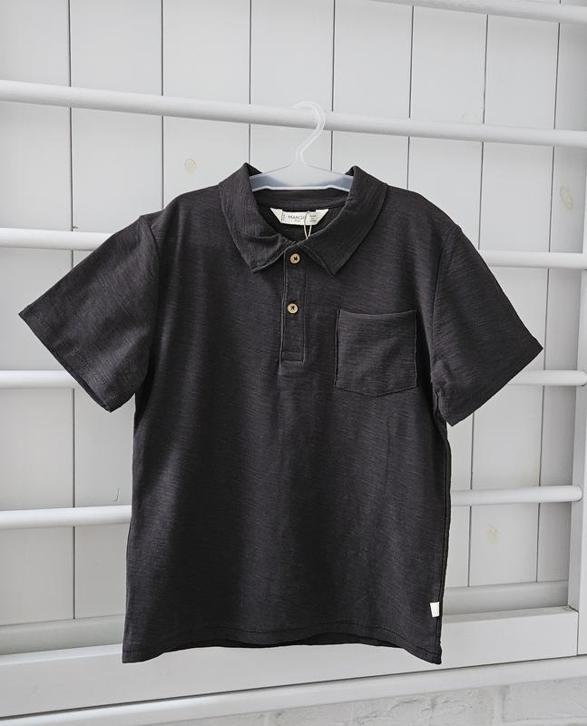 Футболка-поло Mango, размер 6-7, 122. Цвет-графитовый, 100% хлопок. Длина - 47 см, плечи - 31,5 см, ПОГ- 35 см.