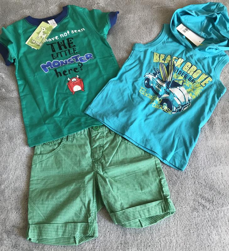 Новое, O'STIN, Reserved, Бемби, комплектом на мальчика 3-4 р. 104-110р. Все нове. На 3-4 года рост 104 +/- см в росте. Шорты Reserved и безрукавка O'stin. Футболка Тм Бемби размер 116 по бирке, маломерит. Все бавовна. Цена за все Замеры: - Безрукавка (O ́STIN) Хб Длина по спинке – 43 см Пог- 32/38см -Шорти (Reserved) Хб Длина - 30 см Крокова - 11,5 см Полу обхват в талии - 27/28 (имеется резинки)